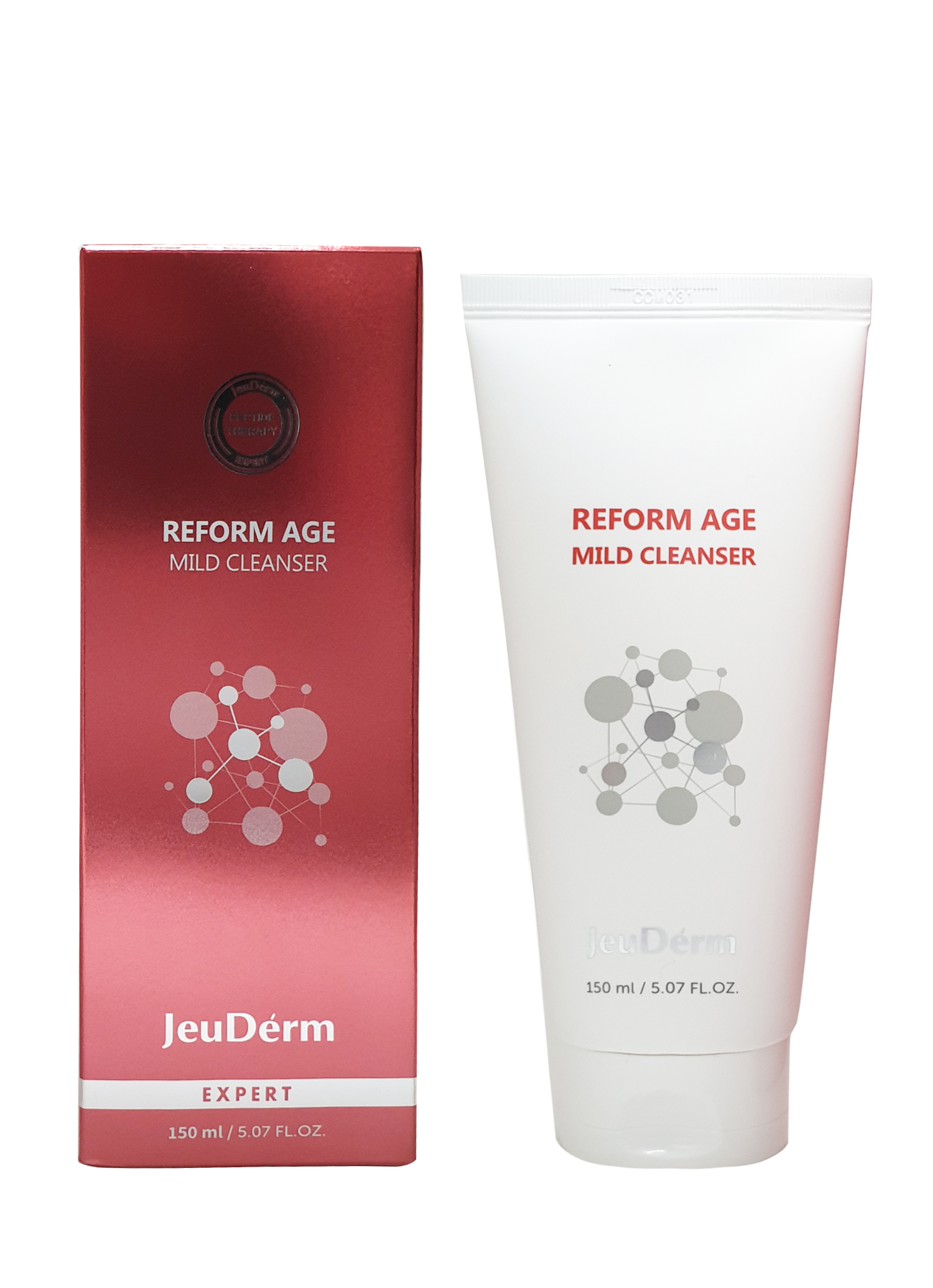 JeuDérm Reform Age Mild Cleanser 150 ml es una espuma limpiadora suave con prebióticos y péptidos formulada para eliminar eficazmente impurezas, restos de maquillaje y exceso de sebo sin perturbar el equilibrio del pH cutáneo ni la barrera hidrolipídica. Provee limpieza en profundidad con alta tolerancia, aportando hidratación y efecto calmante gracias a ingredientes como pantenol, beta-glucano y extracto de Centella. Indicado para todo tipo de pieles, incluyendo sensibles y pieles sometidas a tratamientos estéticos; prepara la piel para los pasos posteriores de la rutina (tónico, sérum y crema). Uso profesional y domiciliario según indicación del especialista.